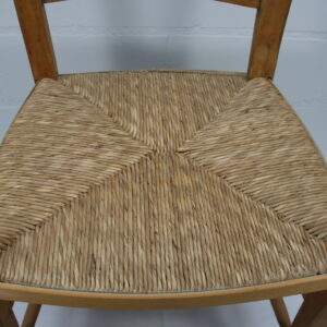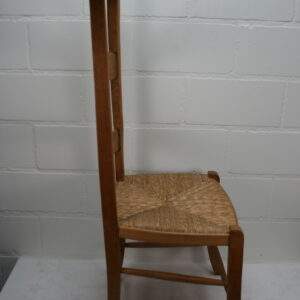 De rieten zitting is nog gaaf en is 40 cm hoog en de rugleuning is 97 cm hoog.