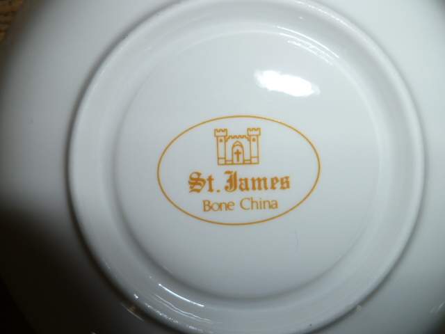 Kop en schotel, roze roosje, St. James, Bone China
