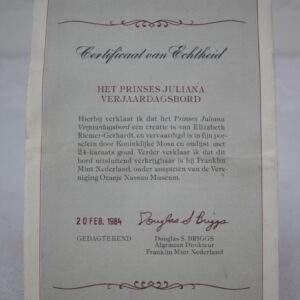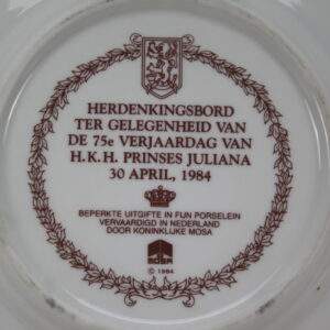 Mosa 1984 Jubileumbord 75 jaar Juliana