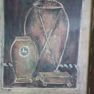 Print met een paar vazen, kortere vaas met leeuwenkuifmotief.